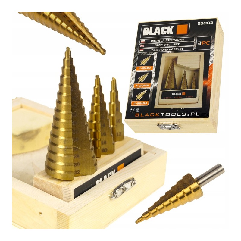 Sada stupňovitých vrtáků do plechů Black 3ks