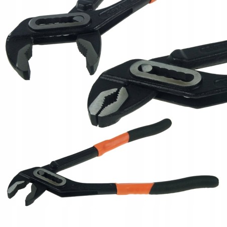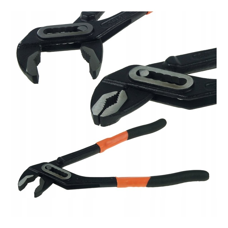 Oblíbený model BLACK nastavitelných kleští pro mj. trubky a různé tvary díky drážkovaným čelistem s velkým otvorem - mimo jiné vyhrazené kleště pro instalatérské, instalatérské, montážní práce atd.